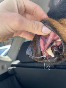 Plus de peur que de mal, elle a fait tout comme une grande. Résultat Mia a réussi à se l’enlever toute seule. Et tout est rentré dans l’ordre. Malgré un super rappel habituel, et un bon timing sur le moment, l’odeur des appâts frais a été plus fort que nous !